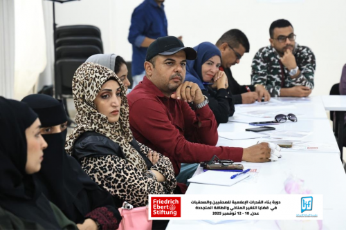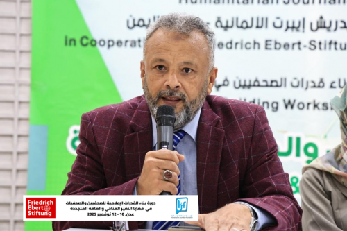 افتتحت مؤسسة الصحافة الإنسانية (hjf) بالشراكة مع مؤسسة فريدريش إيبرت الألمانية (FES) – مكتب اليمن، اليوم الاثنين، 10 نوفمبر 2025 ورشة عمل متخصصة لبناء القدرات الإعلامية حول "التغير المناخي والطاقة المتجددة"، بمشاركة 20 متدرب من الصحفيين والإعلاميين في مدينة عدن.