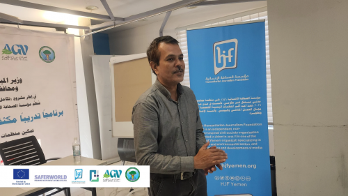 نظمت مؤسسة الصحافة الإنسانية (hjf) اليوم في عدن الورشة التدريبية الرابعة ضمن مشروع "أصوات عدن الخضراء"، في خطوة لتعزيز الدور الإعلامي للقضايا البيئية. وحملت الورشة عنوان "تصميم وتنفيذ الحملات الإعلامية للقضايا البيئية والمناخية"، واستهدفت عشرة مشاركين، يمثلون ثماني (8) منظمات من المجتمع المدني، بالإضافة إلى ممثل عن الهيئة العامة لحماية البيئة فرع عدن، وممثل الهيئة في ديوان وزارة المياه والبيئة.